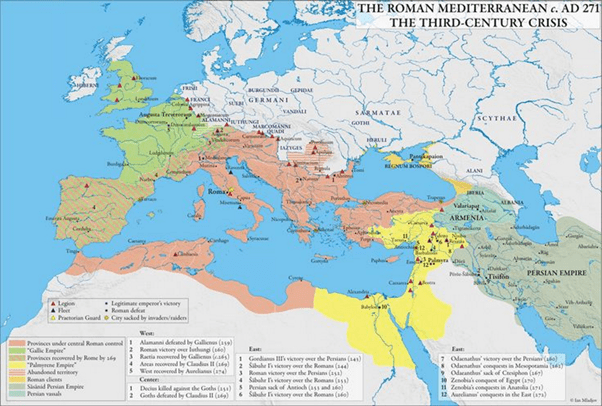 240-300 was a time of crisis. Rome had to face war on every front. Even within the empire ‘local’ emperors ruled at times.